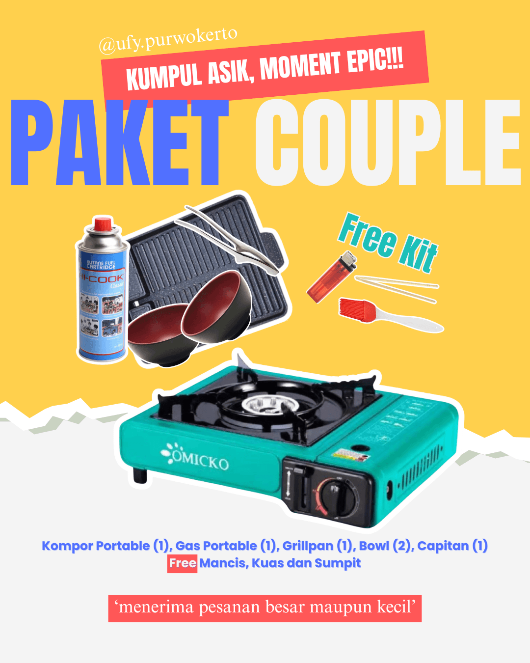Kompor Portable (1), Gas Portable (1), Grillpan (1), Bowl (2), Capitan (1)