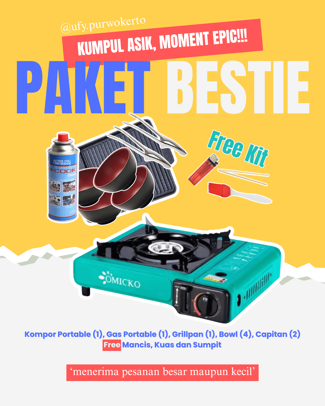 Kompor Portable (1), Gas Portable (1), Grillpan (1), Bowl (4), Capitan (2)