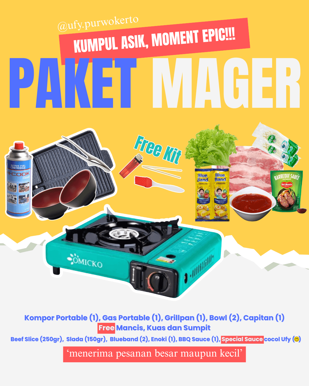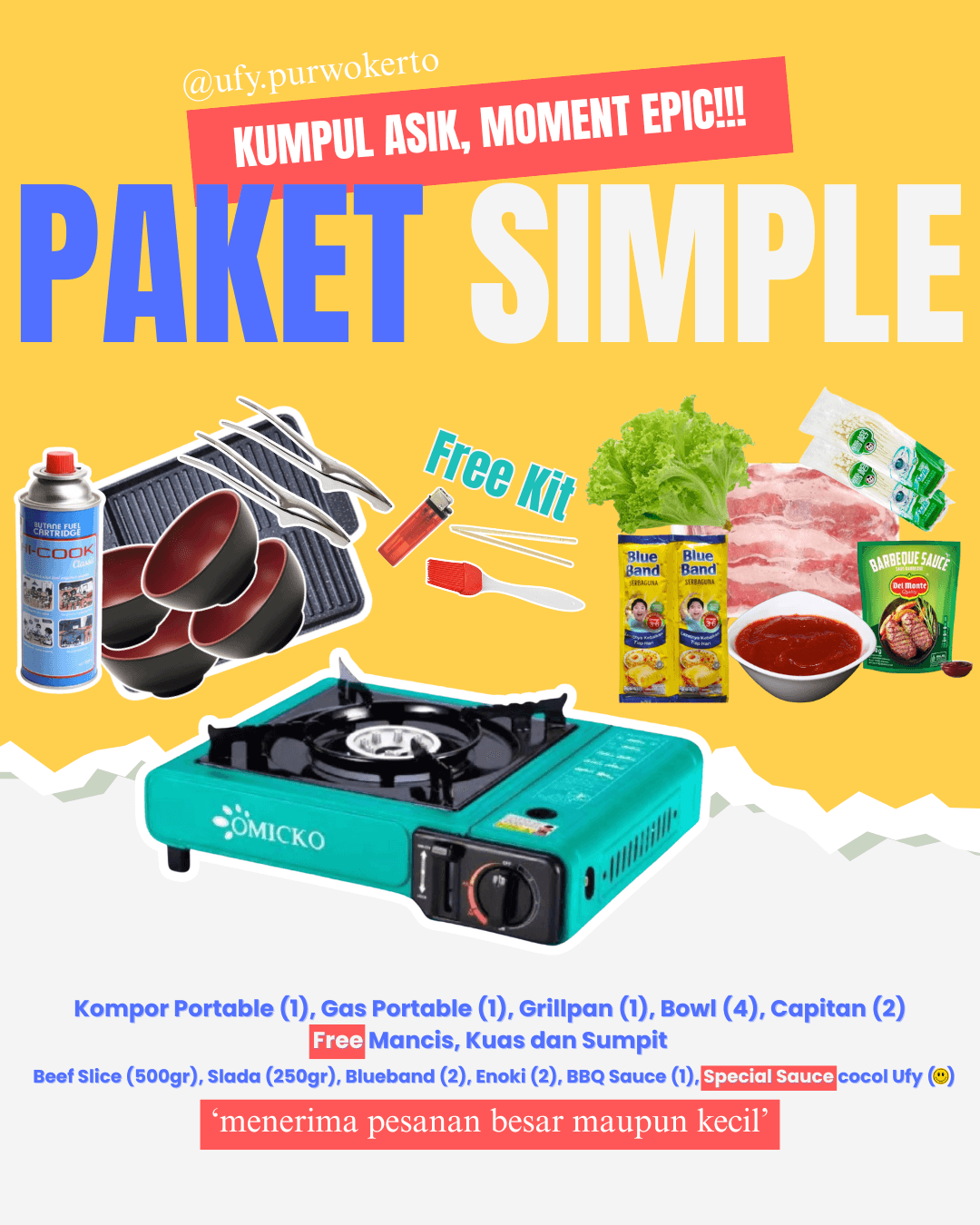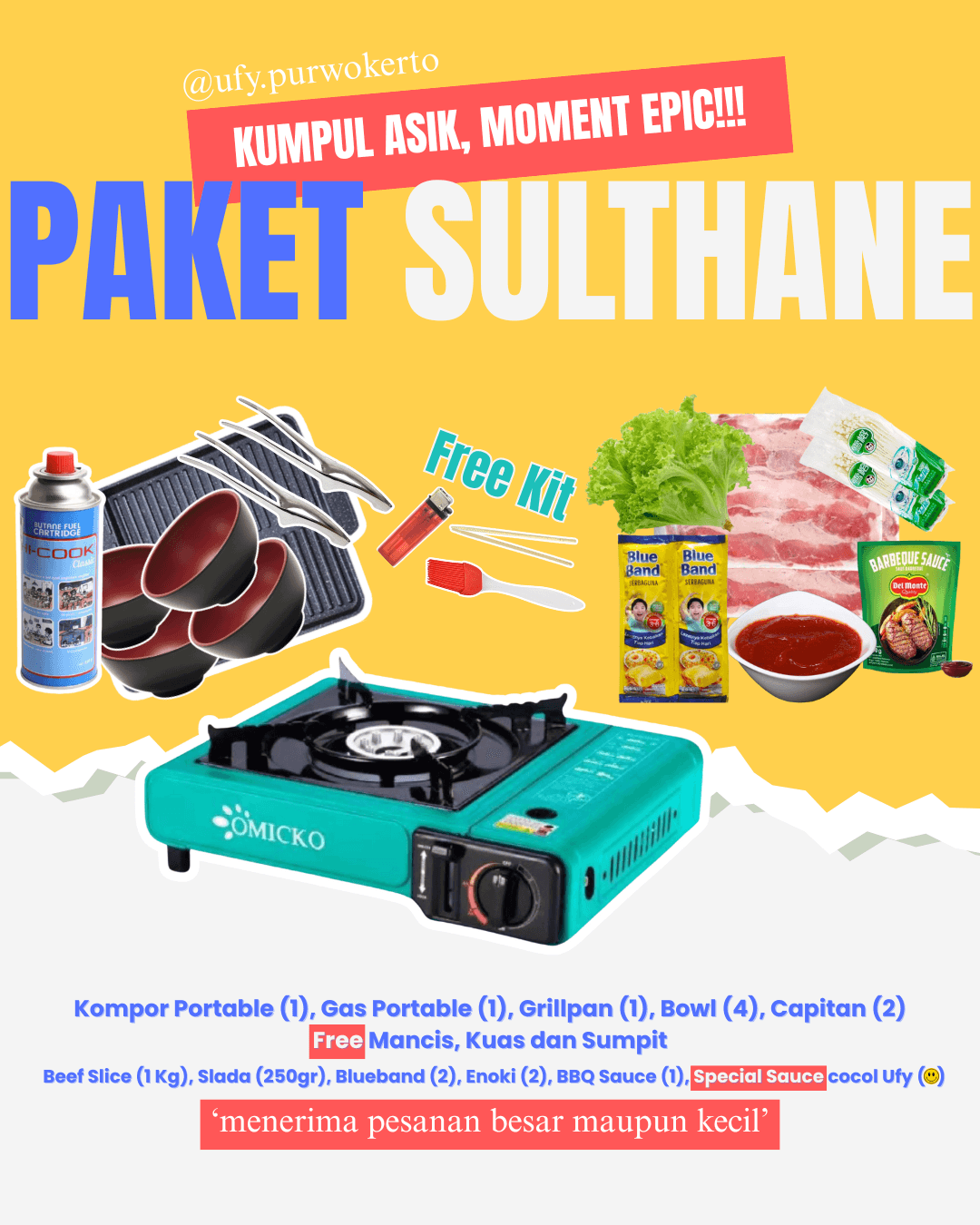 Beef Slice (500gr), Slada (150gr), Blueband (2), Enoki (1), BBQ Sauce (1), Special Sauce cocol Ufy